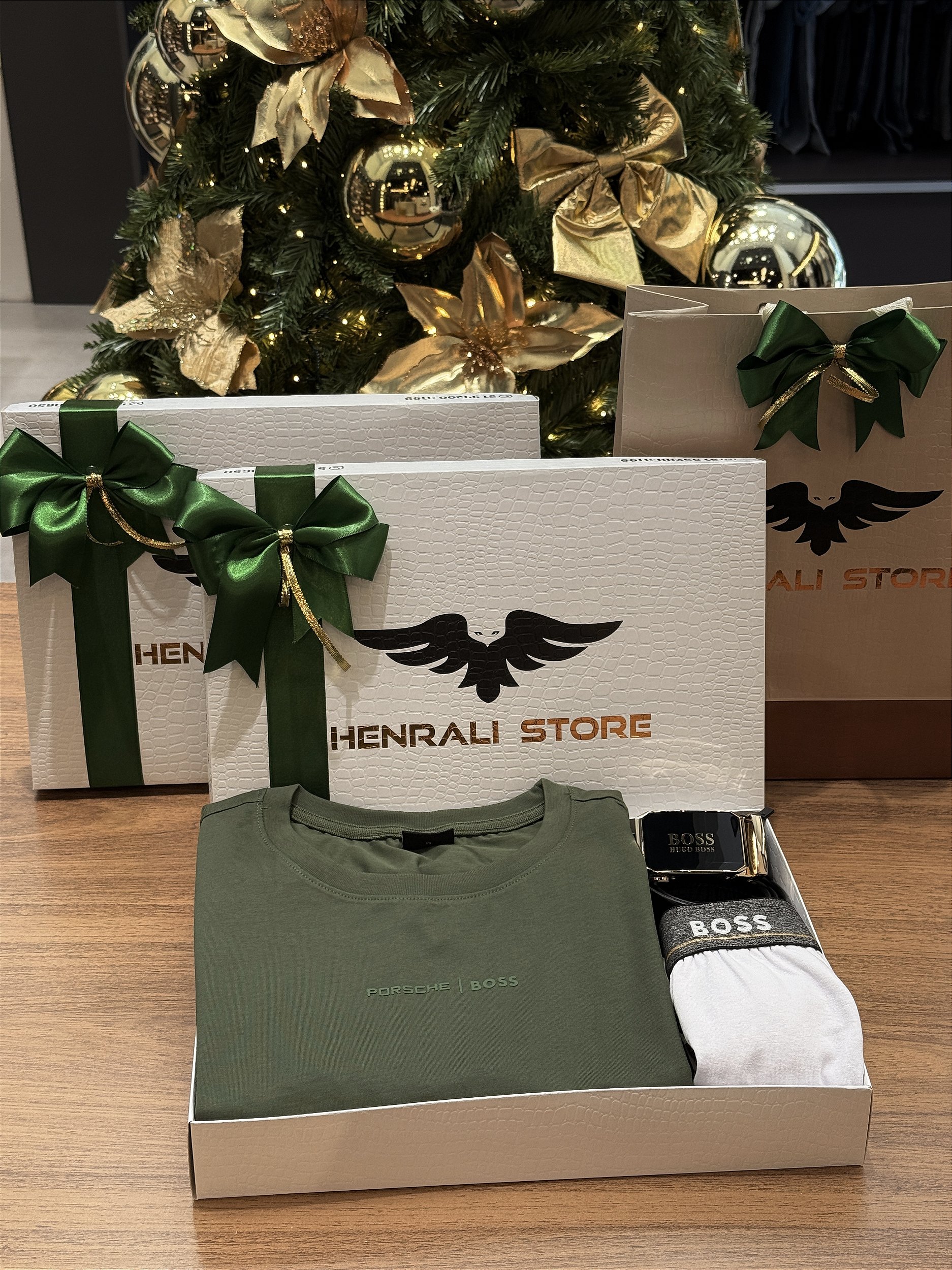 1 cueca boxer em algodão, 1 cinto e box branco personalizado de Natal.