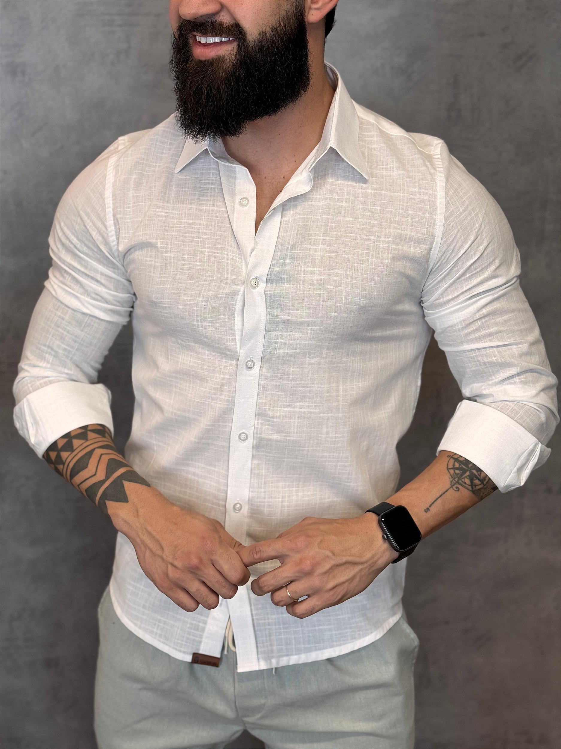 Camisa social confeccionada em tecido de linho, leve e respirável, ideal para dias mais quentes. Oferece conforto térmico, toque natural e um visual sofisticado e atemporal, perfeita para composições formais ou casuais refinadas.