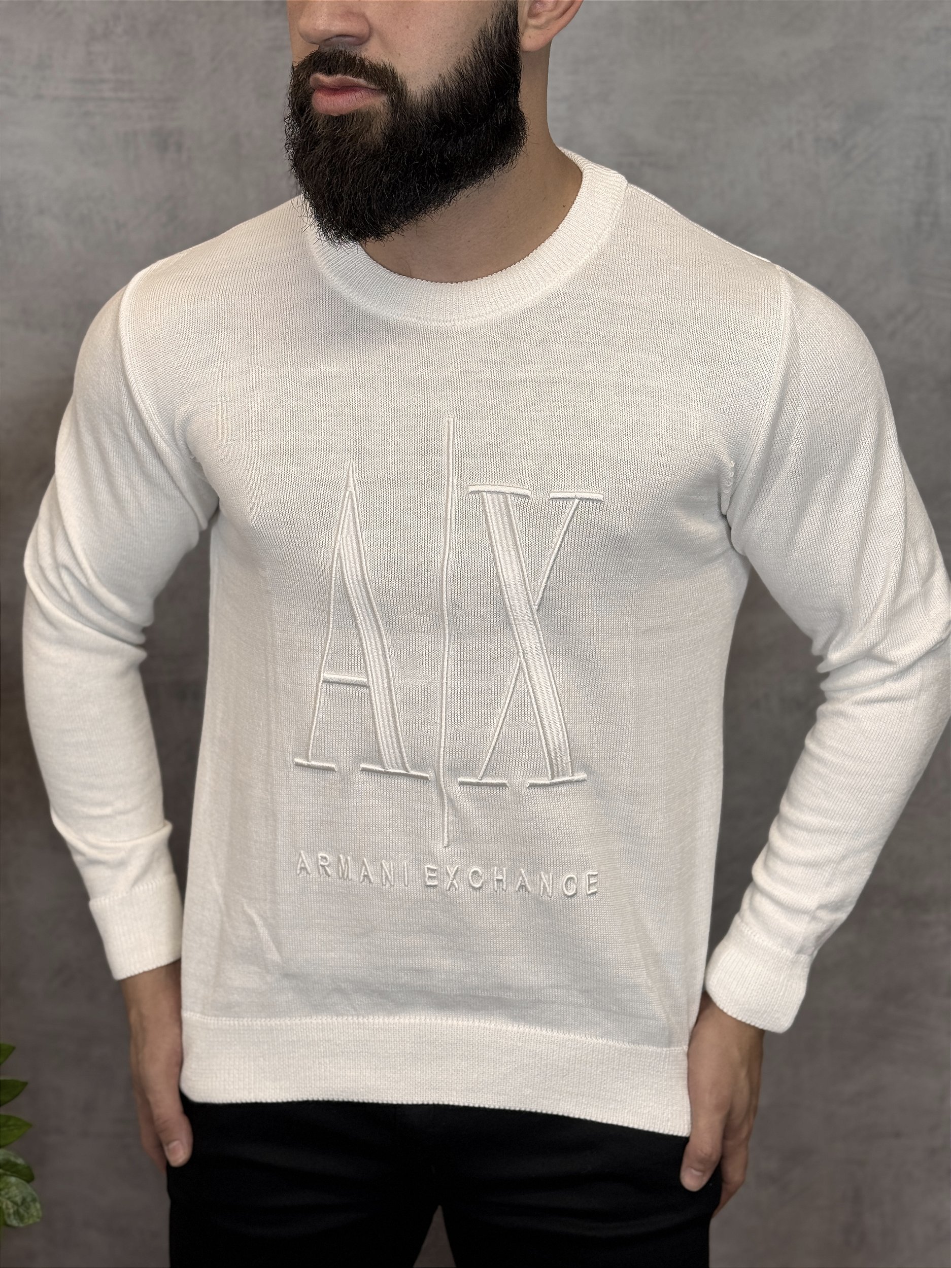 Suéter desenvolvido em tricô, com textura diferenciada e ótimo isolamento térmico. Proporciona conforto, estilo e um visual sofisticado, ideal para produções casuais ou composições mais alinhadas em dias de temperaturas mais baixas.